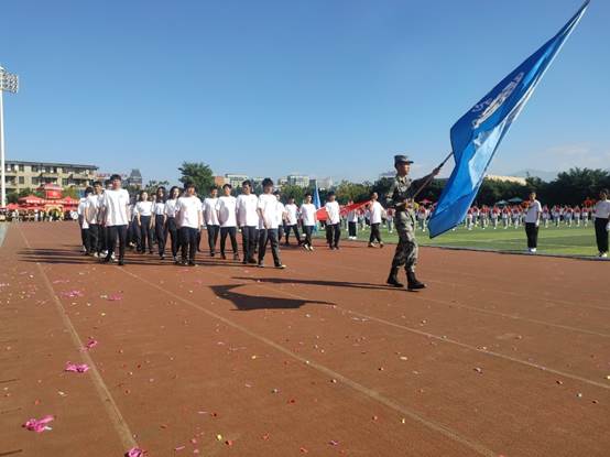 隨著院長(zhǎng)宣布運(yùn)動(dòng)會(huì)正式開始,全體師生起立行注目禮舉行升旗儀式,國(guó)旗在嘹亮的國(guó)歌聲中冉冉升起,禮畢后。各個(gè)二級(jí)學(xué)院在激昂的運(yùn)動(dòng)員進(jìn)行曲中開始了走方陣,其中信息與智慧交通學(xué)院壓軸出場(chǎng),他們排列著整齊的方陣,邁著矯健的步伐,緩緩?fù)ㄟ^主席臺(tái),接受學(xué)校領(lǐng)導(dǎo)檢閱,信息學(xué)院的學(xué)子們充分展示了“求是自強(qiáng),求實(shí)創(chuàng)新”的精神風(fēng)貌。