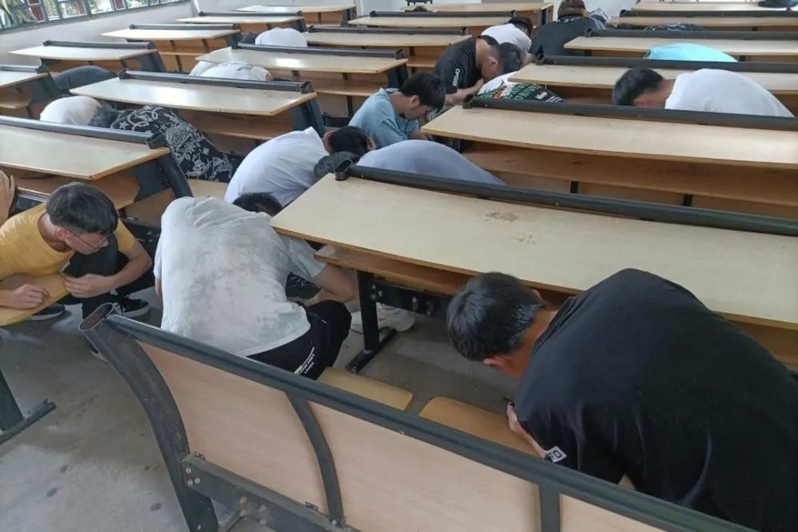 一陣警報(bào)聲拉開了演練的序幕,本次演練主要包括避險(xiǎn)、疏散兩個(gè)流程。演練開始后,全體同學(xué)在班委的組織下,迅速就地進(jìn)行應(yīng)急避險(xiǎn)。在收到緊急避險(xiǎn)結(jié)束立即疏散的指令后,大家迅速有序地從教室、宿舍撤離,沿著規(guī)劃好的路線迅速撤離,抵達(dá)指導(dǎo)避難點(diǎn)。