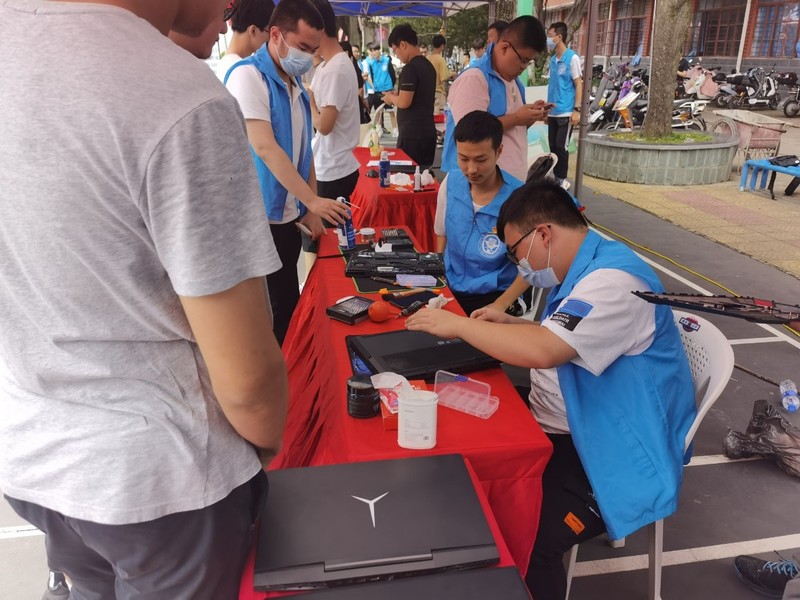 “E芯人”大學生志愿者服務隊的志愿者們展現(xiàn)了當代青年獨立自主的精神和無私奉獻的精神的統(tǒng)一,積極運用自身所學的電腦零件相關知識,仔細幫同學們的電腦清理和維護,在向同學們宣傳電腦維護小知識的同時也在鍛煉自己的動手能力,勤奮認真,為身邊同學們做件小事。