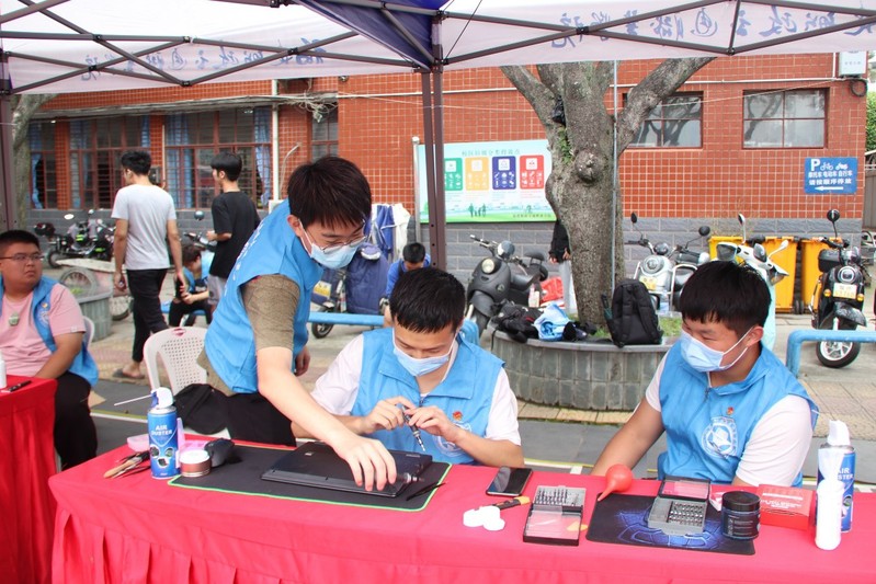 ‘E’芯人大學生志愿服務隊維修電腦是信息學院主打的一個專業(yè)特色,在本次職教周活動中我們展示的內(nèi)容有電腦系統(tǒng)重裝、筆記本清灰、系統(tǒng)優(yōu)化加速、電腦后蓋加固、磁盤分區(qū)擴充、安裝內(nèi)存條等,有效促進我院與其他學院學生關于的電腦知識交流,增強“E”芯人大學生志愿服務隊維修電腦這一團隊技術在校內(nèi)的知名度,還能宣傳信息學院的宗旨和理念,不斷的提高自身技術,服務廣大師生。