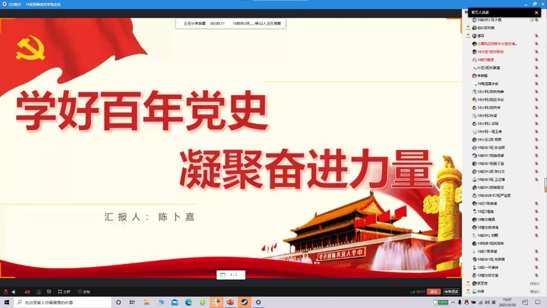 2021年5月30日,信息與智慧交通學(xué)院開(kāi)展了第二期“學(xué)黨史,強(qiáng)信念,跟黨走”2018級(jí)預(yù)備黨員線上黨史學(xué)習(xí)心得交流會(huì)。本次線上交流會(huì)共有40位預(yù)備黨員參與,第二黨支部書(shū)記潘倩瀅老師與各位學(xué)生黨員進(jìn)行交流與探討。