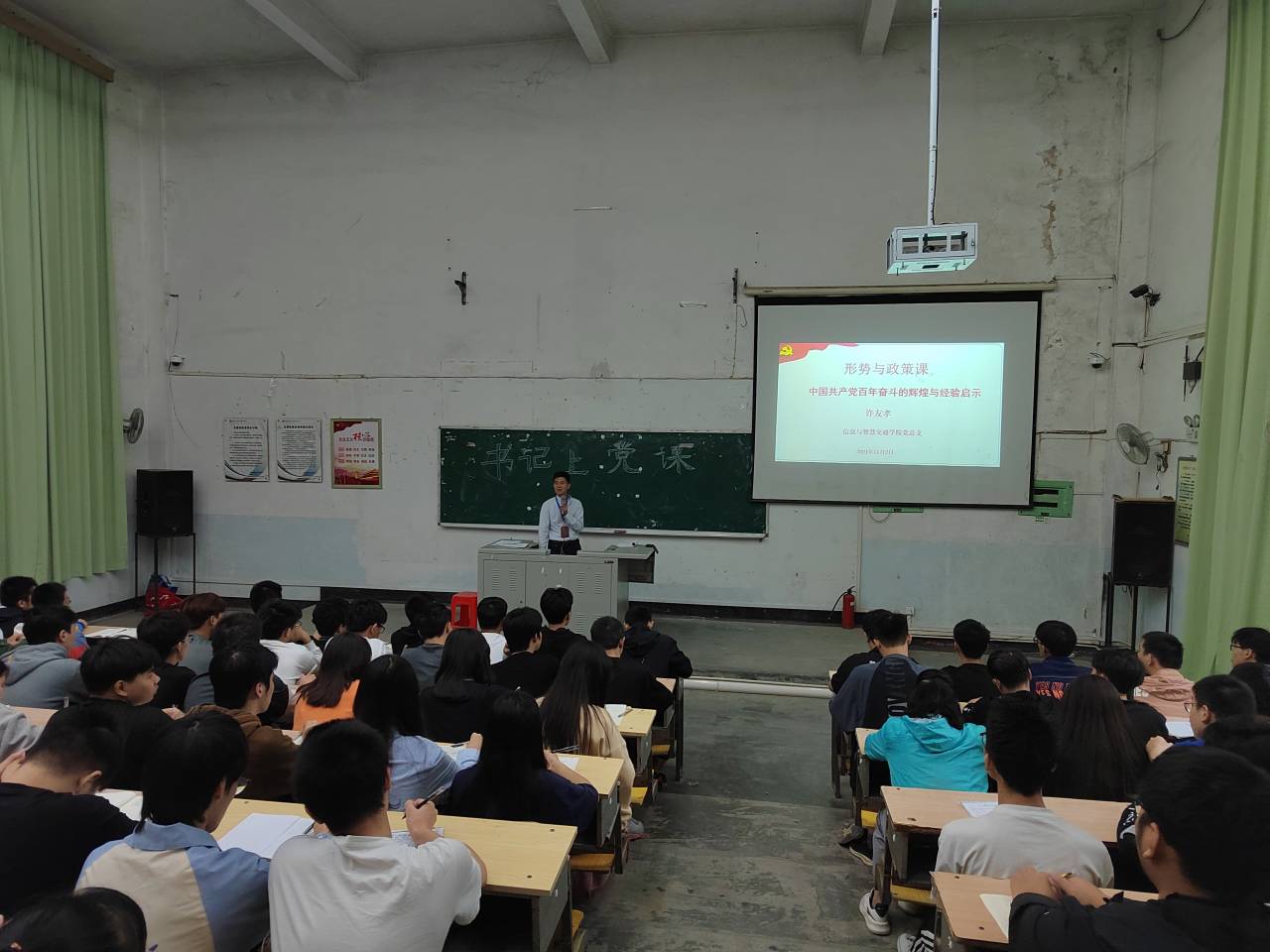 11月5日,在排下階梯教室信息與智慧交通學(xué)院黨總支書記許友孝走上講臺為同學(xué)們上了一堂主題為“堅定信念跟黨走,做一名優(yōu)秀的新時代大學(xué)生”的《形勢與政策》課。
