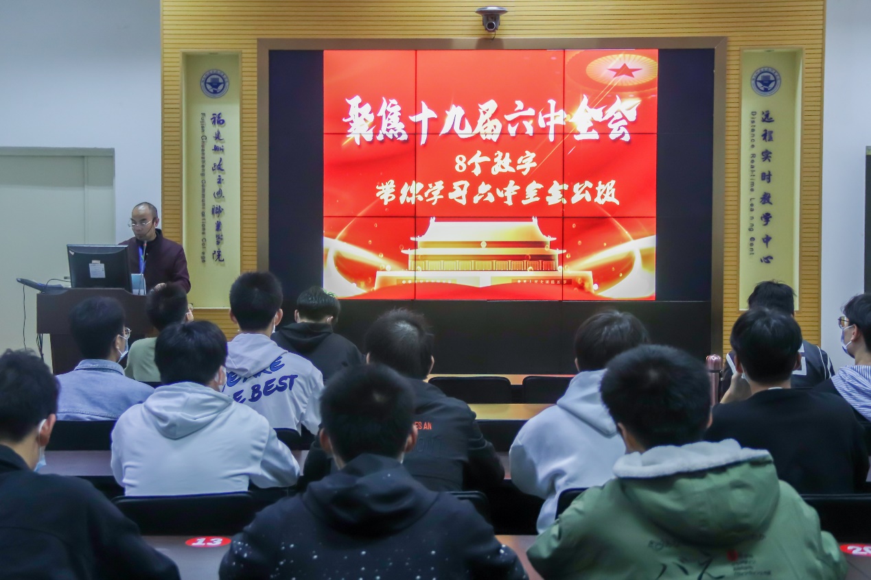 信息與智慧交通學(xué)院黨總支書記許友孝分別圍繞六中全會中2個(gè)“確立”、3個(gè)“需要”、4個(gè)“時(shí)期”、4個(gè)“任務(wù)”、5大歷史意義……八個(gè)數(shù)字帶我們學(xué)習(xí)十九屆六中全會。