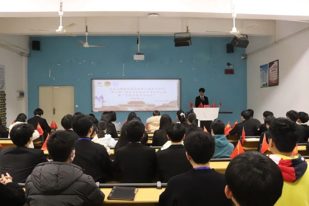 為引導(dǎo)青年學生進一步堅定理想信念,全面提升大學生骨干綜合素質(zhì),積極響應(yīng)團中央、團省委和學校黨委的號召,2022年1月6日晚在2#105舉行第三期青馬學院“第三期”青年馬克思主義者培養(yǎng)工程暨“大學生骨干培訓班”開班儀式。信息與智慧交通學院院分團委書記沈曉家、副書記沈晨晞、王霞以及師生代表及青馬班全體學員參與了此次開班儀式,本次活動由分團委副書記(學生)陳建峰主持。