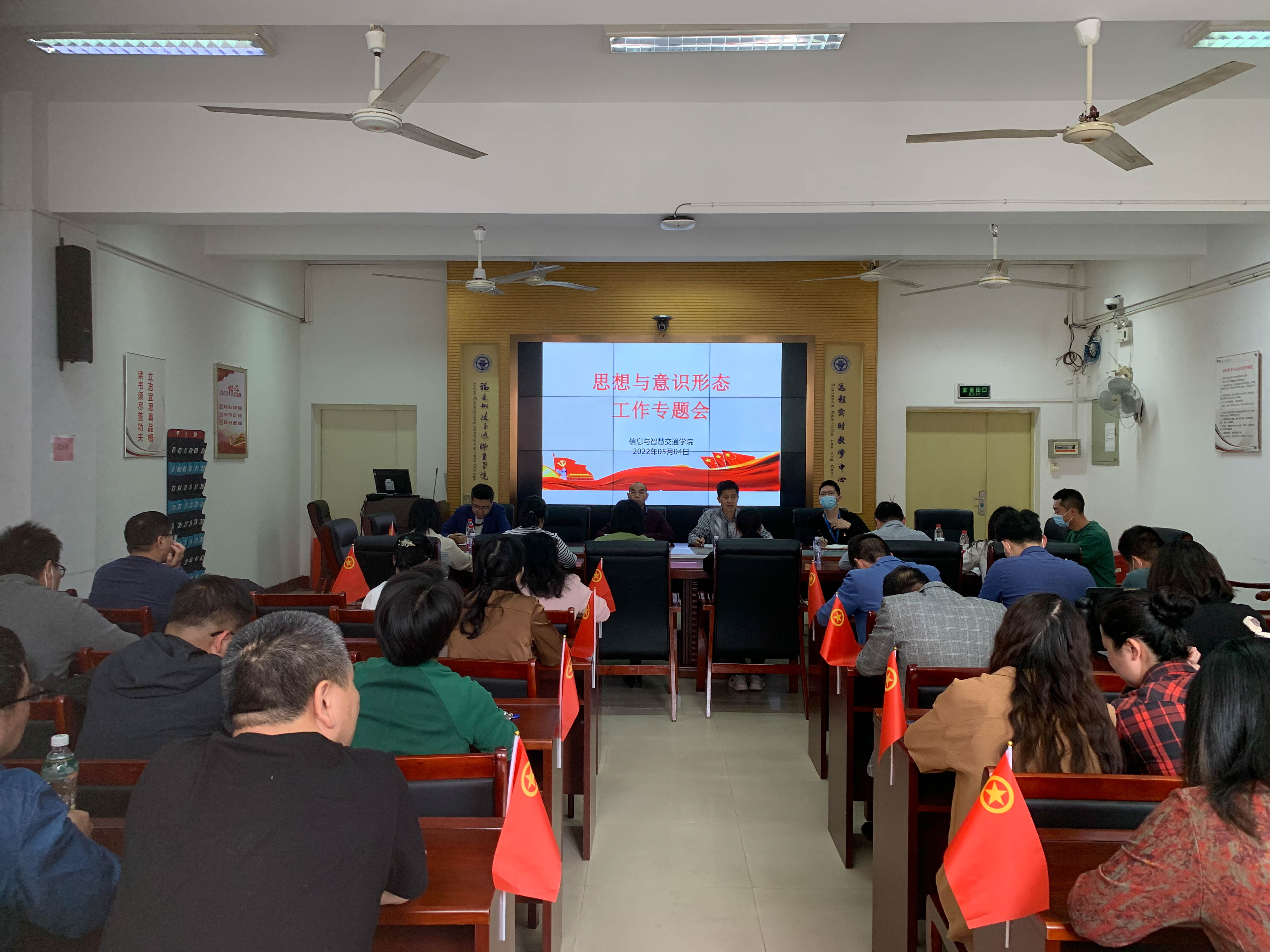 5月4日,信息與智慧交通學(xué)院黨總支組織召開(kāi)了意識(shí)形態(tài)工作專題會(huì),分析研判意識(shí)形態(tài)工作形勢(shì),部署安排下一階段重點(diǎn)工作任務(wù)。全體教職工參加了會(huì)議,會(huì)議由黨總支書(shū)記許友孝主持。