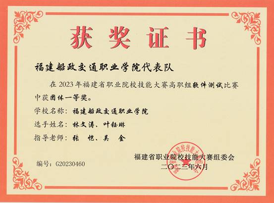 2023年3月11日,福建省職業(yè)院校技能大賽(軟件測試賽項)圓滿落幕,我院的林文濤和葉鈺琳兩位同學(xué)在張愷和吳金兩位老師指導(dǎo)下取得一等獎第一名。