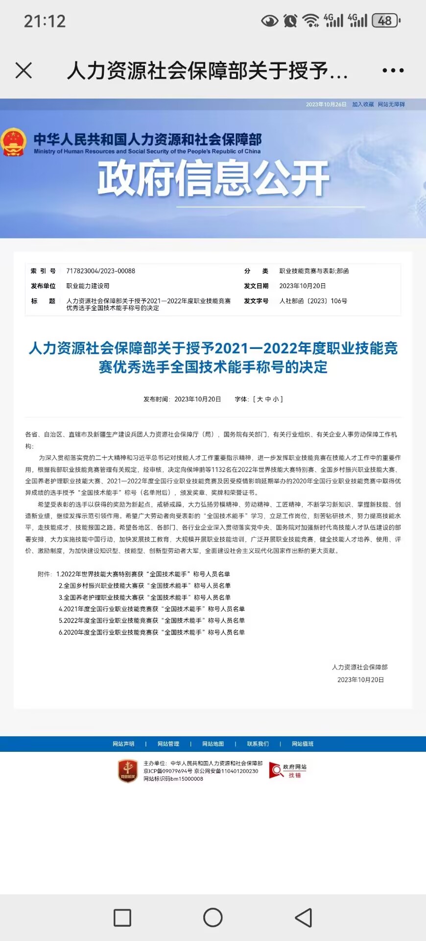 近日,中華人民共和國人力資源社會保障部發(fā)布通知,人力資源社會保障部關于授予2021-2022年度職業(yè)技能競賽優(yōu)秀選手全國技術能手稱號,我院信息與智慧交通學院教師王霞獲此殊榮。
