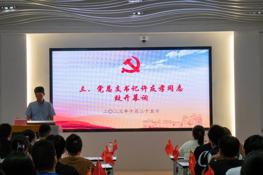 黨總支書記許友孝致開幕詞,他向同學(xué)們提出三點要求:一、認真學(xué)習(xí),提升素養(yǎng);二、志存高遠,鑄牢信念;三、主動參與,學(xué)做合一。