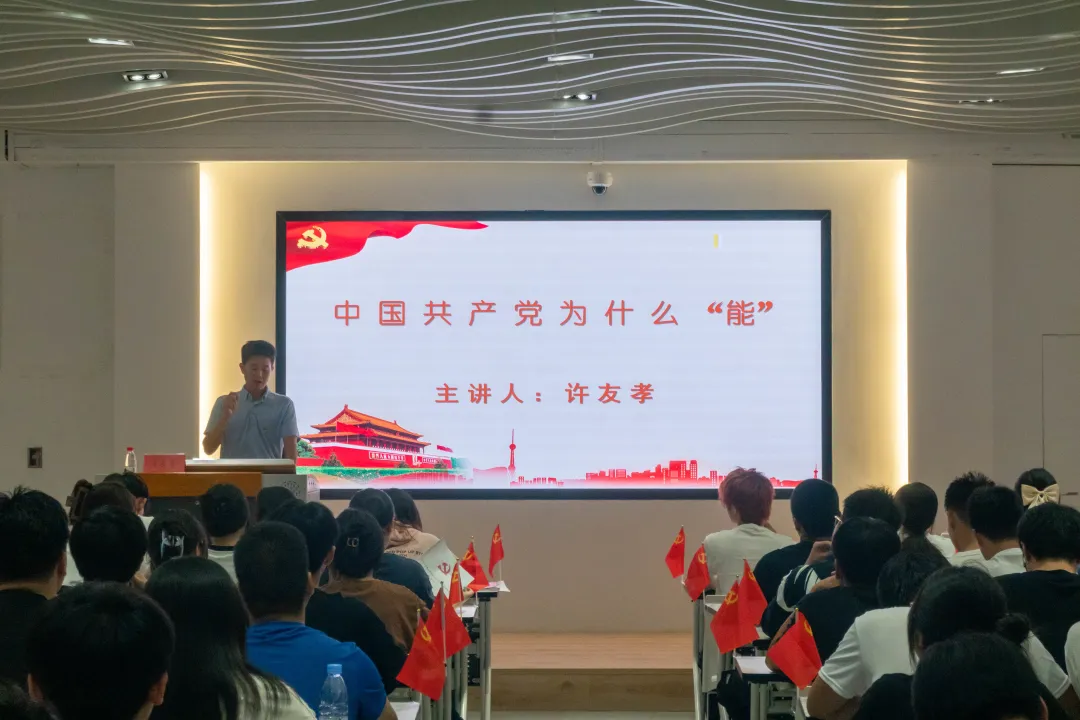 開班儀式結(jié)束后,黨總支書記許友孝為學(xué)員們作題為《中國共產(chǎn)黨為什么“能”》的黨課,本次課程圍繞“科學(xué)的理論指導(dǎo)”、“堅定的理想信念”、“強大的組織優(yōu)勢”、“堅實的群眾基礎(chǔ)”、“徹底的自我革命”五個方面進行開展講解。