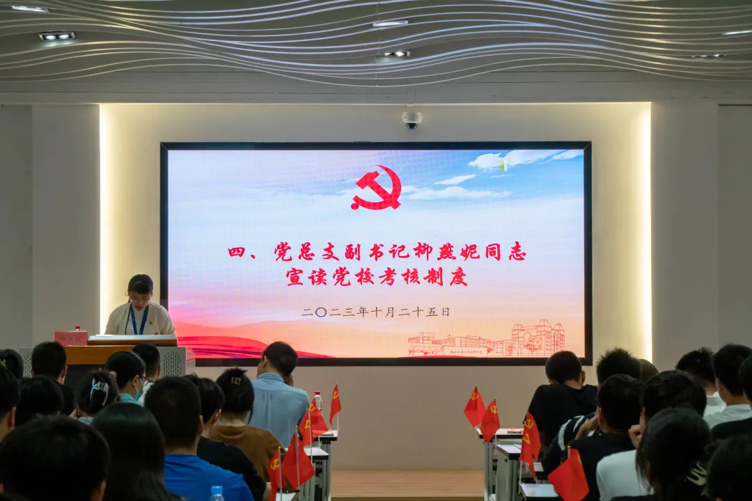 黨總支副書記柳燕妮同志為學(xué)員們宣讀信息與智慧交通學(xué)院2023年第三期黨校學(xué)員考核制度,同時為學(xué)員們指出黨校考核制度的重要性,并表示將會對所有參與黨校學(xué)習(xí)的成員進行嚴格的考核。
