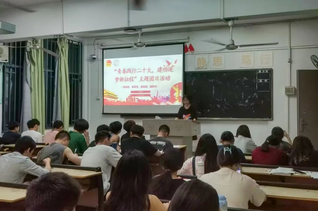 本次團日活動以各班級團支部為單位,2021級團支部與2022級團支部齊頭并進,由團支書帶領團支部成員及班級學習貫徹習近平新時代中國特色社會主義思想主題教育工作會議“學思想、強黨性、重實踐、建新功”總要求,聚焦學習貫徹習近平新時代中國特色社會主義思想為根本任務,以“青春踐行二十大,建功逐夢新征程”為主題,汲取團中央強大精神力量。