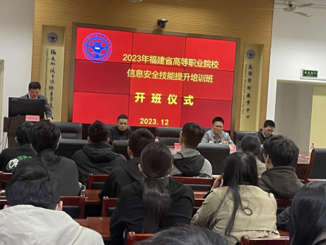 深入貫徹落實《國家職業(yè)教育改革實施方案》、《教育部辦公廳關(guān)于開展職業(yè)教育教師隊伍能力提升行動的通知》、《職業(yè)院校教師素質(zhì)提高計劃(2021-2025年)》等政策文件精神,加強教育系統(tǒng)網(wǎng)絡(luò)安全人員隊伍建設(shè),強化專業(yè)教師的信息安全專業(yè)技能及項目開發(fā)指導(dǎo)能力,2023年12月1日上午,2023年福建省高等職業(yè)院校信息安全技能提升培訓(xùn)班在福建船政交通職業(yè)學(xué)院信息與智慧交通學(xué)院舉行了開班儀式活動。