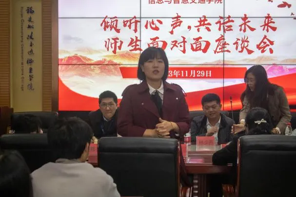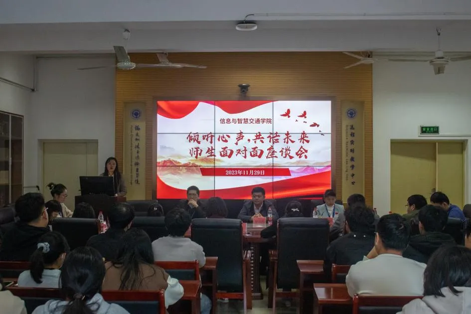 為進(jìn)一步貫徹落實(shí)“以學(xué)生為中心”的教育理念,傾聽(tīng)學(xué)生心聲,回應(yīng)學(xué)生關(guān)切,助力學(xué)生成長(zhǎng),切實(shí)構(gòu)建和諧、信任、友愛(ài)的師生關(guān)系,信息與智慧交通學(xué)院于11月29日下午在福道園自強(qiáng)樓2-1舉行“傾聽(tīng)心聲,共話未來(lái)”——信息與智慧交通學(xué)院師生面對(duì)面座談會(huì),