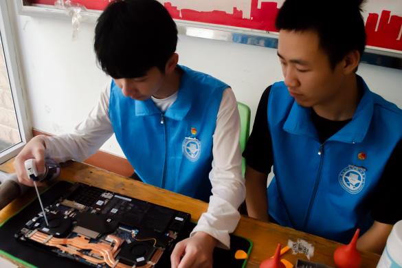 “E芯人”大學(xué)生志愿者服務(wù)隊電腦維修服務(wù)的電腦清灰志愿活動是我院學(xué)生利用自己所學(xué)專業(yè),來為同學(xué)們提供幫助的一項活動,同時這樣活動也在信息學(xué)子中深受歡迎。在校園內(nèi),每周三志愿者們都會設(shè)立服務(wù)點,為同學(xué)們提供電腦清灰服務(wù)。在活動過程中,志愿者們不僅幫助同學(xué)們解決了電腦使用中的問題,還通過自己的親身示范,向同學(xué)們介紹了一些電腦維護(hù)的基本知識。這項活動的開展不僅提高了同學(xué)們的電腦使用效率,也增強了同學(xué)們對電腦的自我維護(hù)能力。在三下鄉(xiāng)社會實踐過程中,我院學(xué)生也在宣傳如何對電腦進(jìn)行維護(hù)以及辦公軟件的使用,為基層群眾帶來了巨大便利。