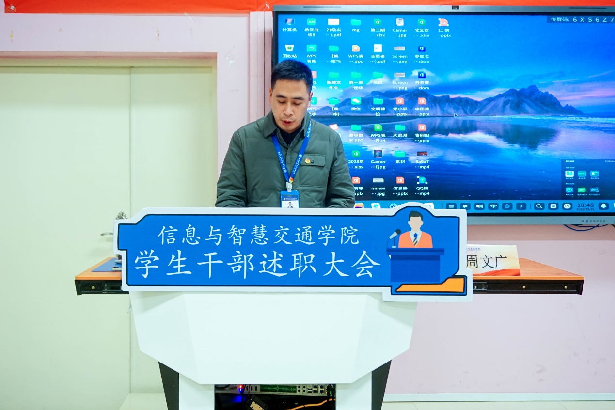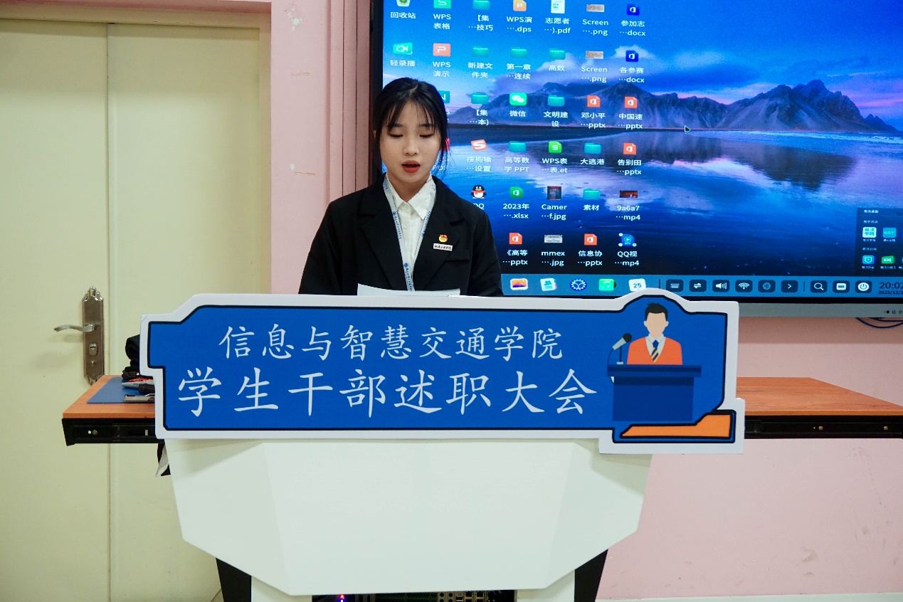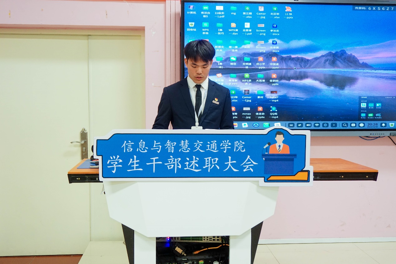 進(jìn)一步深化學(xué)生會改革,支持和引導(dǎo)學(xué)生會更好地服務(wù)青年學(xué)生成長成才的重要載體,幫助學(xué)生會學(xué)生骨干提高思想覺悟和整體素質(zhì)。福建船政交通職業(yè)學(xué)院信息與智慧交通學(xué)院在2023 年12月25日于福道園自強(qiáng)樓2-3 舉行2023-2024學(xué)年第一學(xué)期兩委干部述職大會。