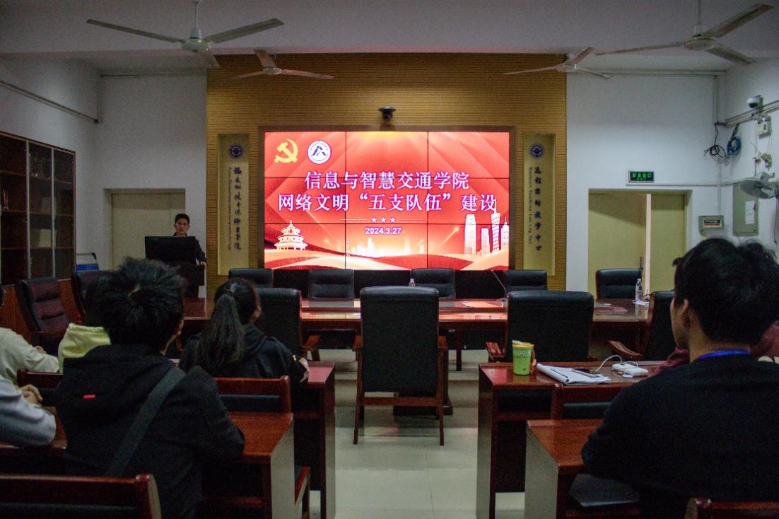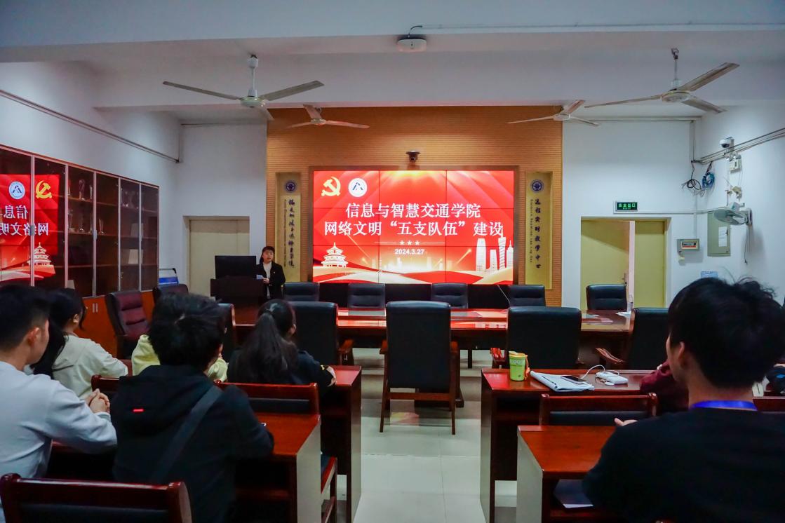 為深入貫徹習(xí)近平總書(shū)記對(duì)網(wǎng)絡(luò)安全和信息化工作的重要指示精神,進(jìn)一步加強(qiáng)網(wǎng)絡(luò)文明建設(shè),推動(dòng)網(wǎng)絡(luò)文明建設(shè)工作深入開(kāi)展,提升學(xué)院師生的網(wǎng)絡(luò)安全意識(shí),做好日常網(wǎng)絡(luò)安全保障工作。3月27日下午,信息與智慧交通學(xué)院在福道園自強(qiáng)樓2-1教室召開(kāi)了網(wǎng)絡(luò)文明“五支隊(duì)伍”建設(shè)專題會(huì)。參會(huì)人員包括信息與智慧交通學(xué)院黨總支書(shū)記許友孝、黨總支副書(shū)記柳燕妮,全體輔導(dǎo)員,以及22級(jí)和23級(jí)網(wǎng)絡(luò)信息安全員、網(wǎng)絡(luò)監(jiān)管員。