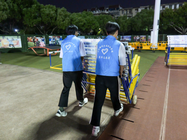 項(xiàng)目比賽開始前,學(xué)生志愿者們早早來到場地,進(jìn)行著緊張而有序的準(zhǔn)備工作。他們認(rèn)真地清掃場地、擺放器材,為運(yùn)動(dòng)員們創(chuàng)造一個(gè)良好的比賽環(huán)境。