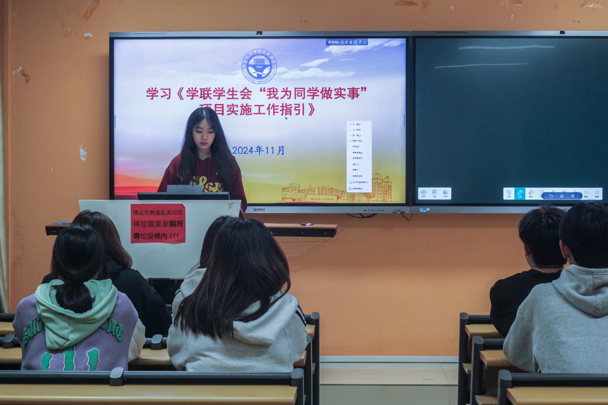 最后,學(xué)生骨干們分享交流為同學(xué)們做實(shí)事的事跡。多位學(xué)生骨干用真摯的話語和生動(dòng)的案例,分享了如何在學(xué)習(xí)和生活中發(fā)現(xiàn)并解決同學(xué)們的實(shí)際困難,每一個(gè)事跡都飽含深情,展現(xiàn)了學(xué)生骨干們以實(shí)際行動(dòng)踐行“我為同學(xué)做實(shí)事”承諾的決心與成效,這些分享不僅樹立了身邊的榜樣,也激發(fā)了更多同學(xué)參與到服務(wù)他人、貢獻(xiàn)社會(huì)的行動(dòng)中來,共同營(yíng)造一個(gè)更加溫馨和諧的校園環(huán)境。