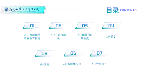 報告總計130余頁,主要分為七大核心板塊,涵蓋人工智能賦能職業(yè)教育概述、AI+辦公自動化、AI+圖像/視頻生成、AI+教學、AI+編程、AI+智能體應用、AI+效率提升等領域的工具解析、操作指引與實踐案例等。報告通過詳細豐富的工具和案例介紹,總結了當前DeepSeek等各類AI工具主流的應用場景,以及如何應用于各類職業(yè)技能領域,為廣大職業(yè)教育工作者和職業(yè)技能學習者提供了一份具有較高價值的參考材料。以下是報告中部分內容節(jié)選。