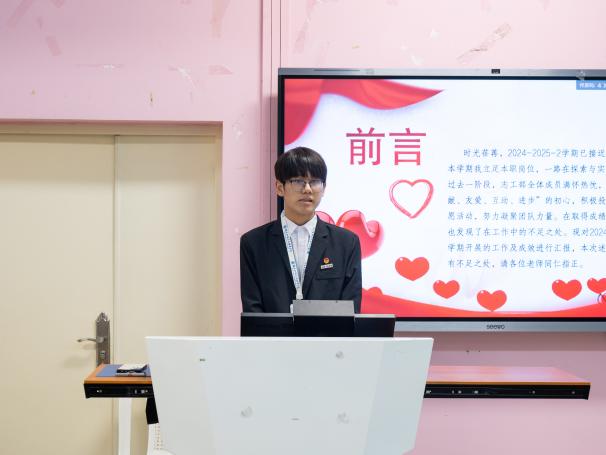 會上,院團委、學(xué)生會各部門依次上臺進行述職匯報,回顧了本學(xué)期工作成果與不足。各部門以數(shù)據(jù)和案例為支撐,全面總結(jié)了在組織建設(shè)、活動開展、服務(wù)同學(xué)等方面的工作成效。同時也對工作中存在的問題進行了深入反思,形成重點改進措施清單,對未來工作計劃做出規(guī)劃,提出具體行動方案。