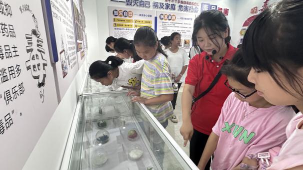 在泰寧縣禁毒教育展廳,踐行團(tuán)成員化身為“禁毒宣講員”,帶領(lǐng)孩子們近距離觀察仿真毒品樣本,解讀毒情數(shù)據(jù)看板。通過(guò)玻璃展柜里的“偽裝陷阱”、墻上觸目驚心的案例,將抽象的禁毒知識(shí)具象化。當(dāng)孩子們踮起腳尖辨認(rèn)“彩色糖果”般的新型毒品時(shí),防毒拒毒的安全意識(shí)已實(shí)現(xiàn)有效滲透——這是實(shí)踐團(tuán)在“三下鄉(xiāng)”活動(dòng)中,為鄉(xiāng)土青少年構(gòu)建安全防護(hù)體系的重要實(shí)踐縮影。