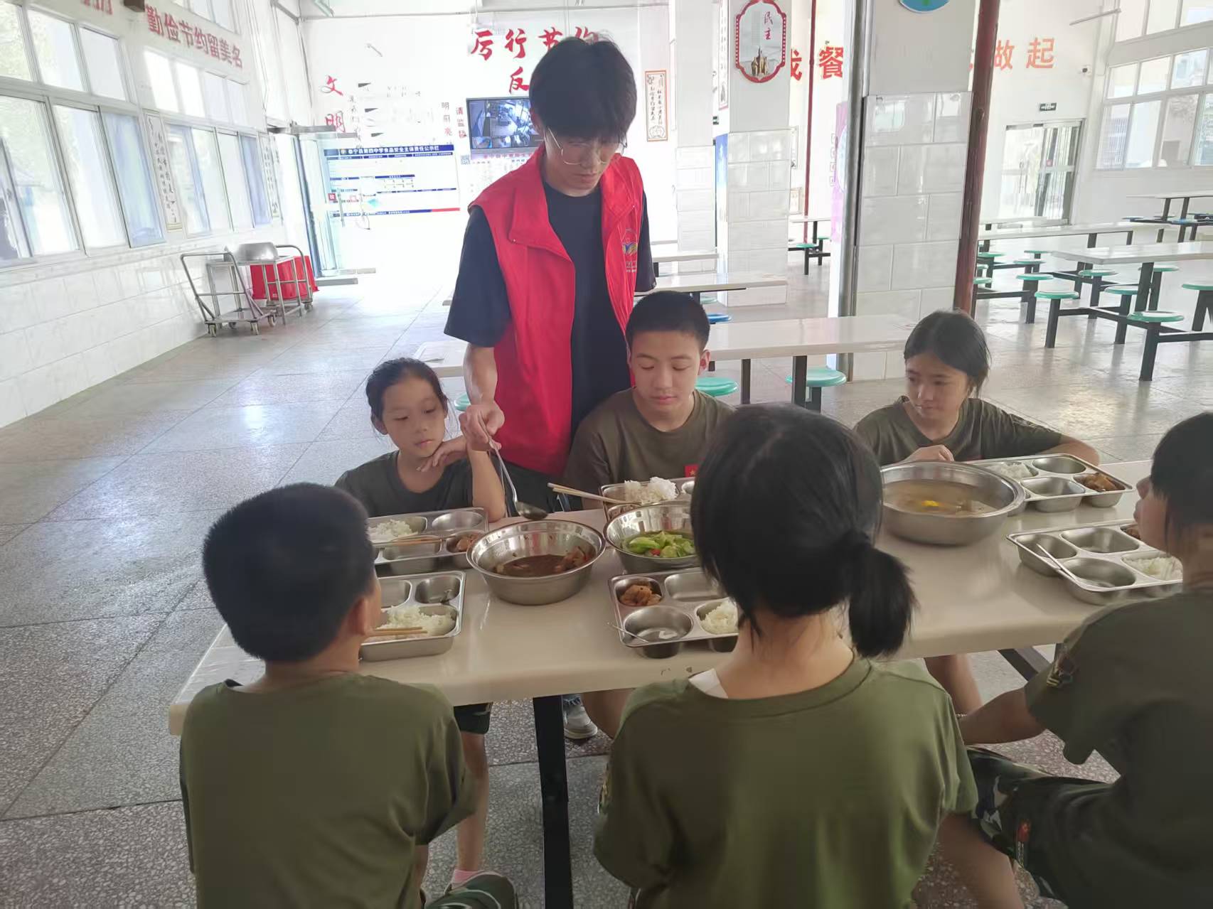 促進(jìn)團(tuán)與孩子們圍坐的身影里,藏著“粒粒皆辛苦”的溫暖叮嚀。每粒米都馱著土地的晨露,每片菜葉都裹著耕耘的轍印。支教課堂外,“珍惜”是最生動(dòng)的成長課——讓孩子們懂得:碗里的不僅是溫飽,更是鄉(xiāng)野對(duì)煙火的深情,是無數(shù)雙手托舉的希望。