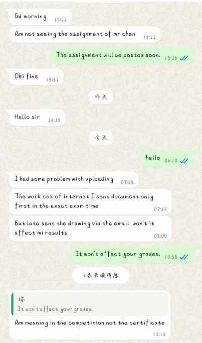 圖2志愿者為非洲學(xué)員線上答疑、發(fā)通知郵件并保障線上決賽考試