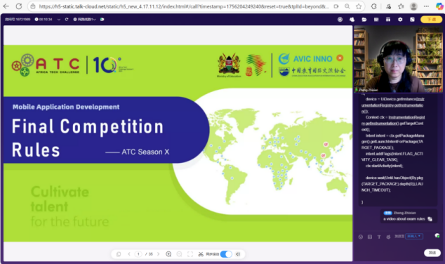 歷經(jīng)一月密集培訓(xùn),移動應(yīng)用開發(fā)賽項決賽成功舉辦,來自肯尼亞、埃及、加納、烏干達(dá)、坦桑尼亞、贊比亞、津巴布韋7個國家的56支隊伍、224名師生盡展所學(xué)、佳績頻傳。中航國際成套設(shè)備有限公司在感謝信中高度評價:“鄭志嫻、李伙欽兩位老師耐心授課、悉心指導(dǎo),以及黃鴻杰等5位同學(xué)組成的線上學(xué)員管理團隊克服時差認(rèn)真負(fù)責(zé),受到廣大學(xué)員喜愛和歡迎。