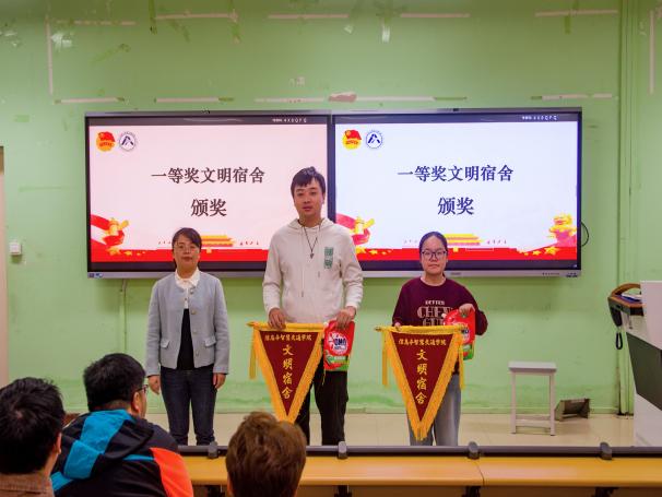 本次活動自10月中旬啟動,全院在校同學(xué)積極參與,綜合宿舍文化、遵規(guī)守紀、衛(wèi)生狀況等方面擇優(yōu)評選出15間學(xué)院”文明宿舍”。儀式上,主持人介紹了本次活動的目的和意義,宣讀了獲獎宿舍名單。柳燕妮副書記和參會輔導(dǎo)員老師們?yōu)楂@獎宿舍頒獎。