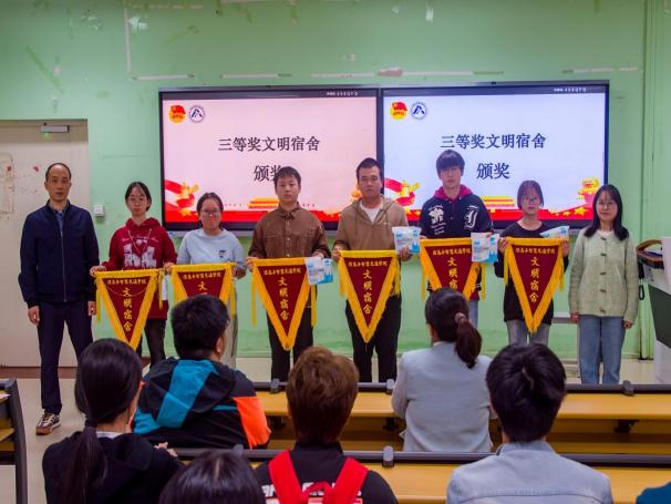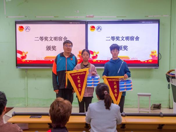 柳燕妮副書記向受表彰宿舍同學(xué)表示了祝賀。她希望同學(xué)們以先進為榜樣,從保持宿舍干凈整潔做起,將文明修養(yǎng)內(nèi)化于心;同時不斷強化擔當意識,共建溫暖集體,把文明熱情轉(zhuǎn)化為學(xué)習(xí)成長動力,積極展現(xiàn)新時代大學(xué)生的青春風(fēng)采。