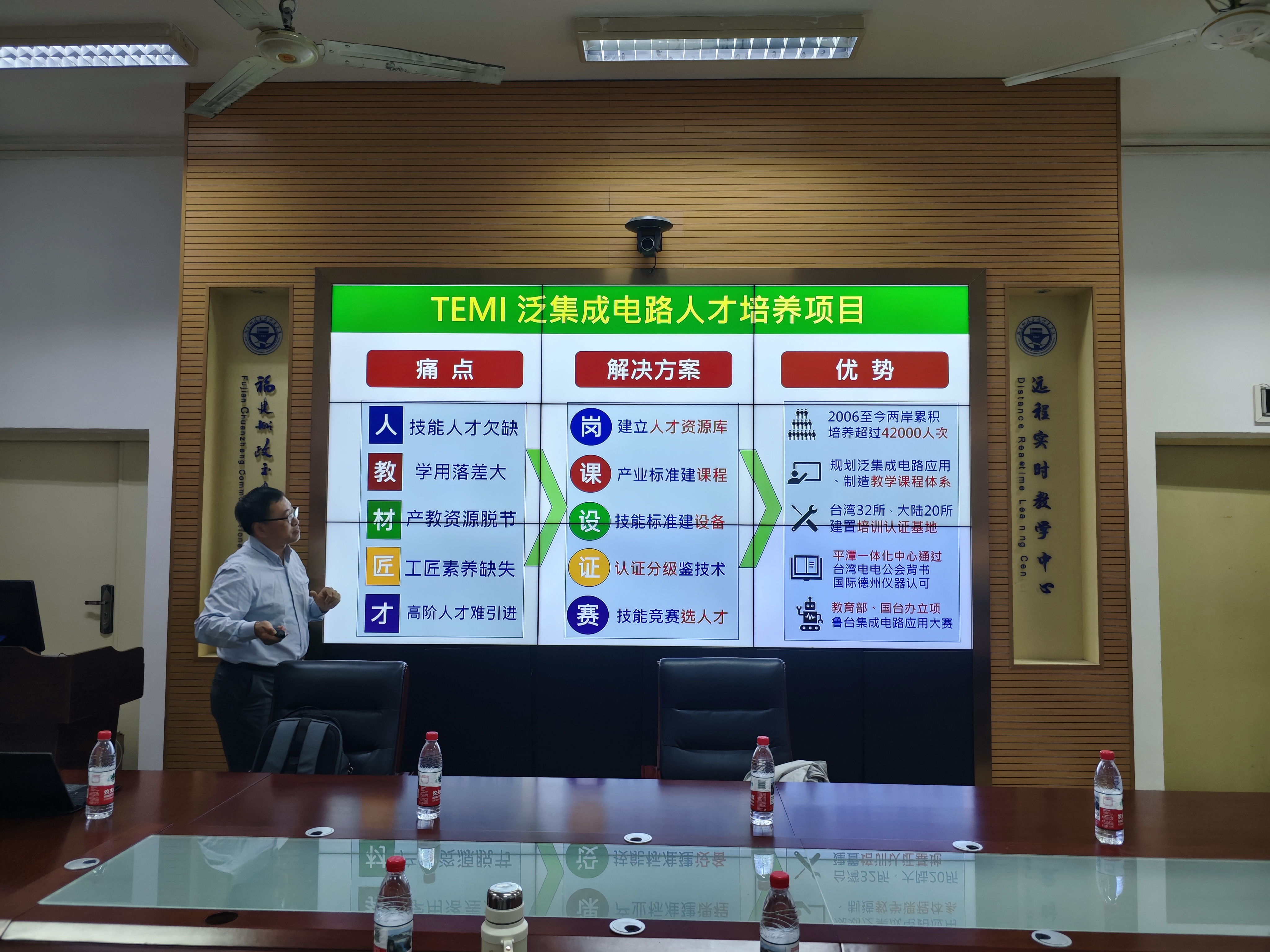 交流中,陳宏昇博士圍繞泛集成電路產業(yè)發(fā)展現狀、人才需求痛點及產教融合創(chuàng)新路徑展開分享。他深入剖析了當前行業(yè)“技能人才欠缺、學用落差大、產教資源脫節(jié)”等核心問題,重點介紹了TEMI五合一芯質生產力人才培養(yǎng)模式。并結合寧波大學科技學院、山東信息職業(yè)技術學院等成功案例,詳細解讀了“政府+產業(yè)園+院?!钡亩嘣献髂J剑约半娮咏M件拆焊、電路板設計、單片機程序設計等核心課程的實踐教學體系。