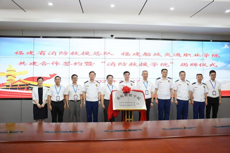 7月27日上午,我院與福建省消防救援總隊(duì)共建合作簽約暨“消防救援學(xué)院”揭牌儀式在學(xué)院第一會(huì)議室舉行。福建省消防救援總隊(duì)黨委書(shū)記、政治委員賴世雄,總隊(duì)黨委委員、副總隊(duì)長(zhǎng)陳立民,總隊(duì)黨委委員、政治部主任陳培志,福建船政交通職業(yè)學(xué)院黨委書(shū)記張海明,黨委副書(shū)記、院長(zhǎng)陳錦輝,黨委副書(shū)記陳宜大,黨委委員、副院長(zhǎng)張祖柱出席儀式。學(xué)院黨委委員、副院長(zhǎng)陳艷紅主持儀式,福建消防救援總隊(duì)政治部各處室干部和訓(xùn)保支隊(duì)指戰(zhàn)員代表,學(xué)院相關(guān)職能部門(mén)、二級(jí)學(xué)院相關(guān)負(fù)責(zé)人及安全與環(huán)境學(xué)院教師代表參加。