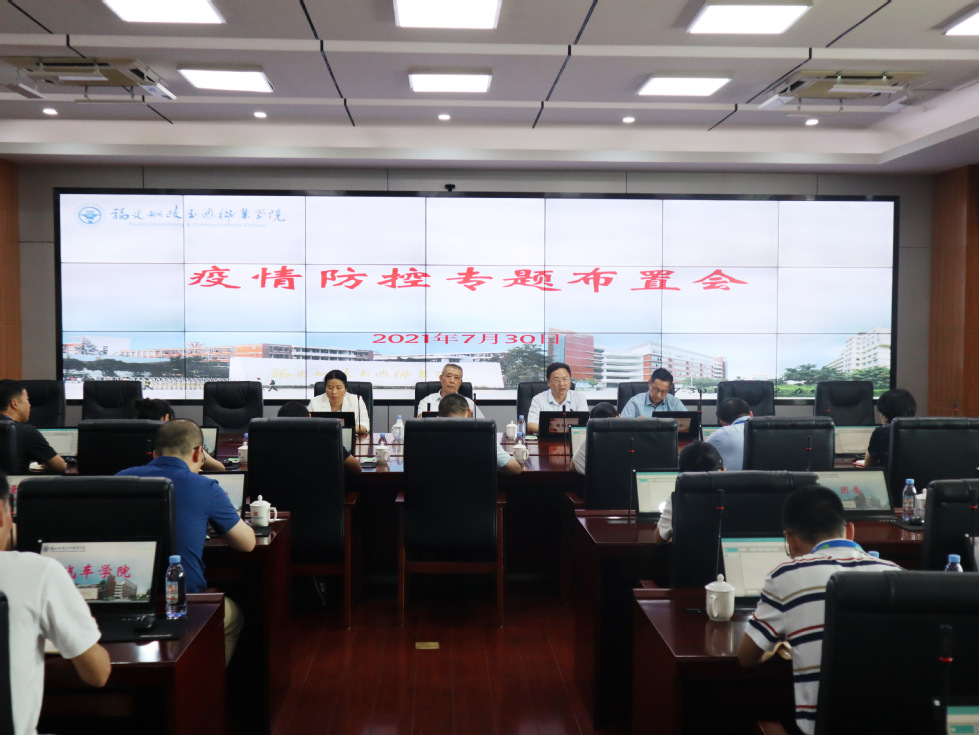 7月30日,學(xué)院召開疫情防控工作布置會(huì)。黨委副書記、院長(zhǎng)陳錦輝主持會(huì)議,黨委書記張海明、紀(jì)委書記張輝、副院長(zhǎng)張祖柱,各部門、二級(jí)學(xué)院負(fù)責(zé)人出席會(huì)議。