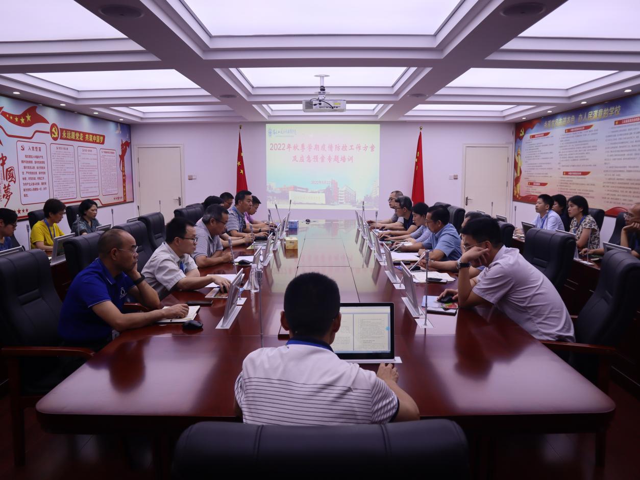 為統(tǒng)籌做好我校疫情防控和教育教學(xué)工作,8月22日,根據(jù)學(xué)院應(yīng)對新冠肺炎疫情工作領(lǐng)導(dǎo)小組安排,黨委委員、副院長張祖柱主持秋季學(xué)期疫情防控工作方案及應(yīng)急預(yù)案專題培訓(xùn),各部門、二級學(xué)院負(fù)責(zé)同志參加培訓(xùn)。