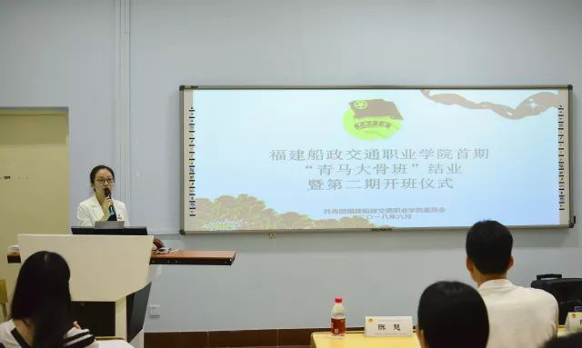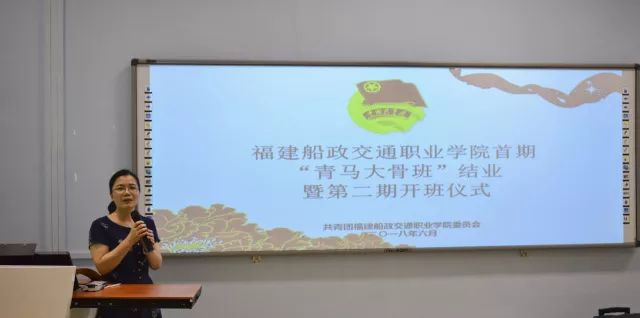 陳艷紅副院長在開班儀式致辭,她說:”青馬大骨班“的學員,不僅是團學干部,更是學院優(yōu)秀學子的典型代表。"青馬工程"的首要任務(wù),就是培養(yǎng)具有堅定馬克思主義理想信念的青年學生,充分發(fā)揮團員青年在學院建設(shè)發(fā)展中的生力軍和突擊隊作用。她希望第二期青馬大骨班的同學向首期優(yōu)秀學員學習,在繼承中創(chuàng)新,并對第二期青馬大骨班學員提出了三點要求: