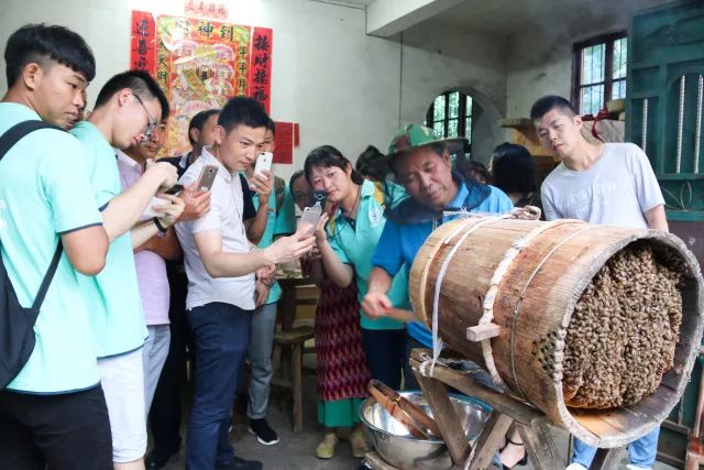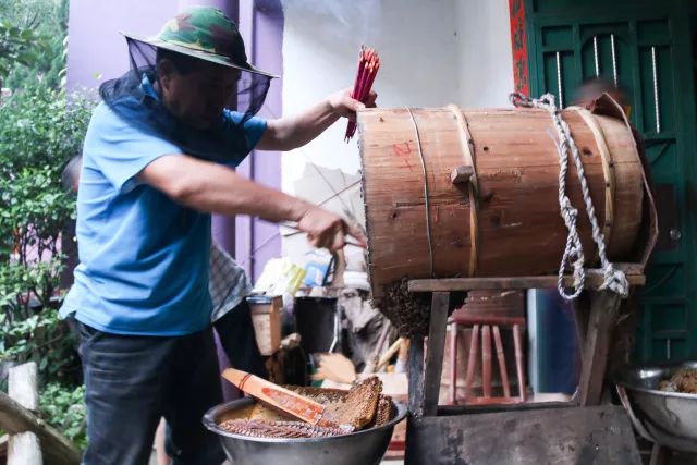 與當(dāng)?shù)仡I(lǐng)導(dǎo)、村民一同見證“割蜜”過程,新奇又有趣