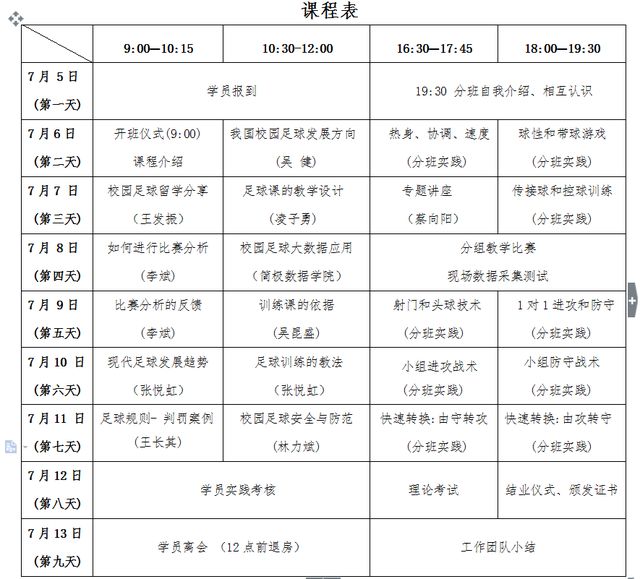 7月5日-13日,“2018年全國青少年校園足球骨干師資國家級專項(xiàng)培訓(xùn)(以下簡稱足球國培班)”在我校開展。
