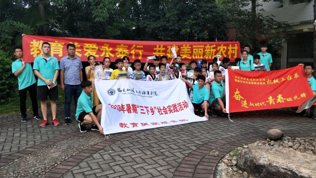 七月中旬,機(jī)械工程系師生組建了一支10人的服務(wù)團(tuán)隊(duì)奔赴國(guó)家扶貧開發(fā)重點(diǎn)縣——福建永泰縣,圍繞建設(shè)美麗鄉(xiāng)村、重溫紅色記憶、探尋民俗古風(fēng)等主題內(nèi)容開展了教育關(guān)愛、紅色之旅、美麗中國(guó)等“三下鄉(xiāng)”系列活動(dòng),融入廣大基層勞動(dòng)人民與他們共享生活之趣,感受勞動(dòng)之樂,體會(huì)青春之美。