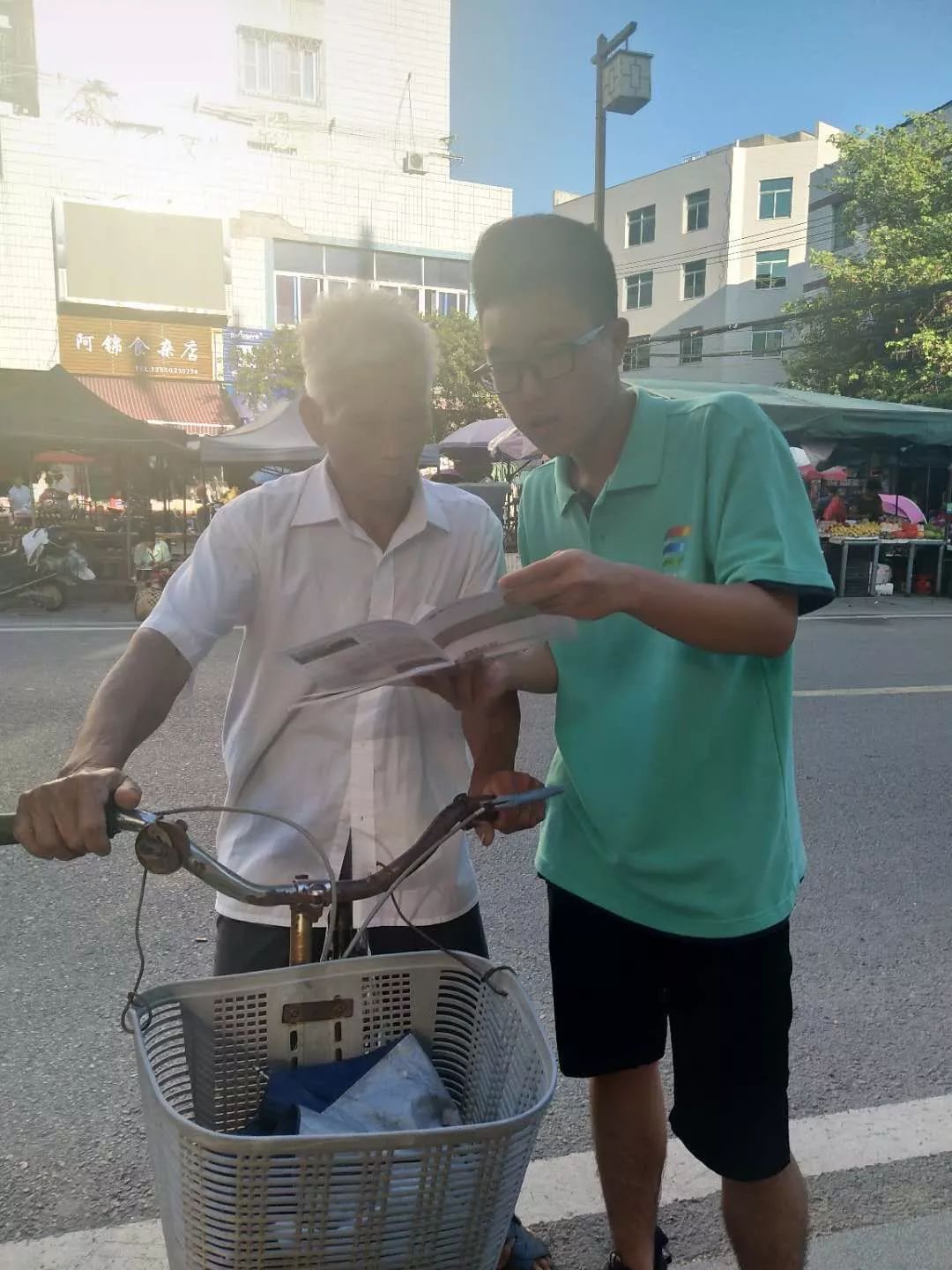 接著團(tuán)隊(duì)成員來(lái)到古鎮(zhèn)街道,告訴古鎮(zhèn)居民做到不占道經(jīng)營(yíng),愛(ài)護(hù)古鎮(zhèn);此行不僅對(duì)古鎮(zhèn)居民進(jìn)行了一個(gè)宣傳教育,同時(shí)也令我們的實(shí)踐團(tuán)隊(duì)的全體隊(duì)友學(xué)習(xí)到了很多,隊(duì)員一致表示以后一定要立足于實(shí)踐,做好環(huán)境的保護(hù),不會(huì)只停留于嘴上。