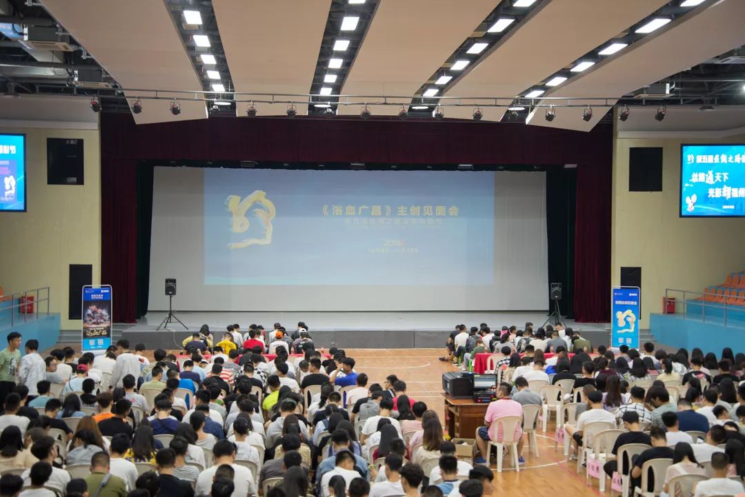 《浴血廣昌》導(dǎo)演高峰、編劇劉英學(xué)與演員張永達(dá)來到了現(xiàn)場,與我院影迷交流互動?,F(xiàn)場熱鬧非凡,校團(tuán)委綜合科科長夏樑波老師、校團(tuán)委干事吳素湲老師等約450多名師生共同觀看了演出。