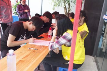 志愿者為獻(xiàn)血者們講解與獻(xiàn)血有關(guān)的事項(xiàng),以及獻(xiàn)血過(guò)后應(yīng)該注意的問(wèn)題。