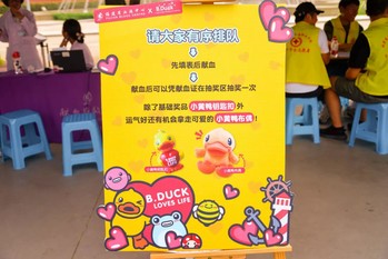 獻血區(qū)旁還設(shè)置了抽獎環(huán)節(jié),設(shè)有“船長獎”和“舵手獎”等若干獎項,參加獻血的師生可以參加抽獎,中獎?wù)攉@得了正版小黃鴨宣傳品。