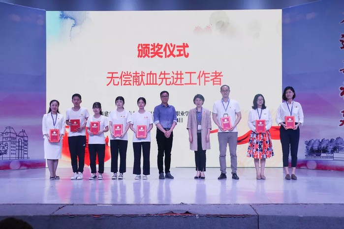 福建省血液中心副主任曾嘉、福建省血液中心獻血服務(wù)一科科長陳建彬、福建省血液中心獻血服務(wù)二科科長陳岑、福建船政交通職業(yè)學(xué)院黨委副書記韓孟強、福建船政交通職業(yè)學(xué)院學(xué)生管理處處長王心金、福建船政交通職業(yè)學(xué)院黨委工作部副主任黃奕及校團委相關(guān)人員、各系部團總支書記、受表彰先進集體及個人等近400人參加本次大會,團委副書記陳慧主持大會。