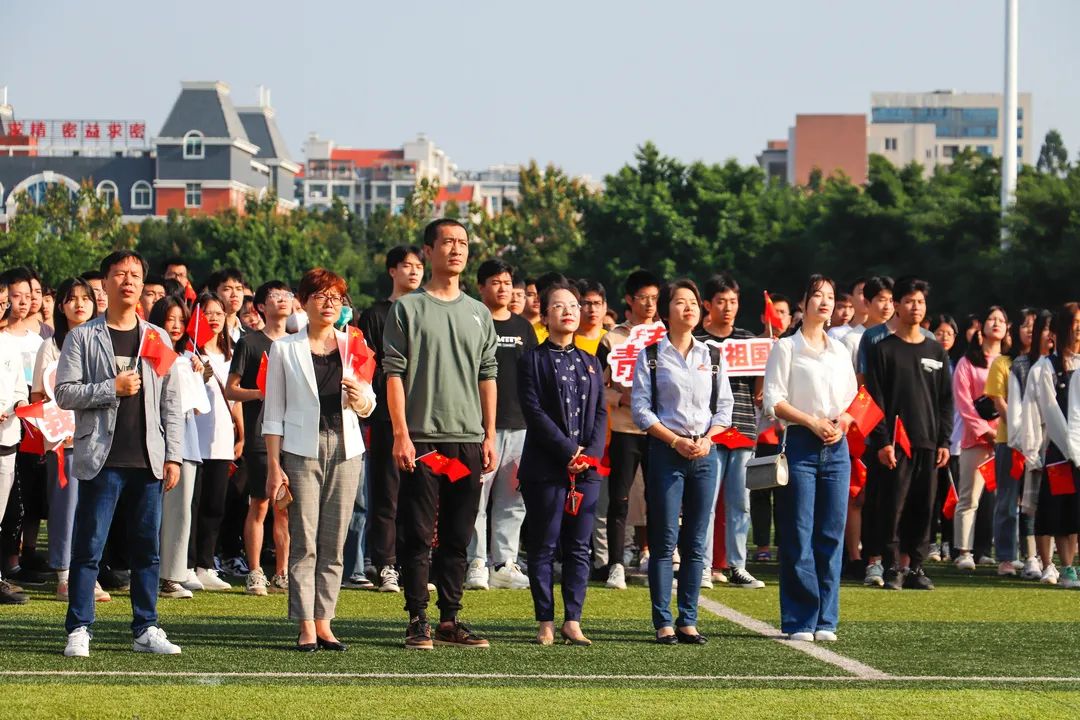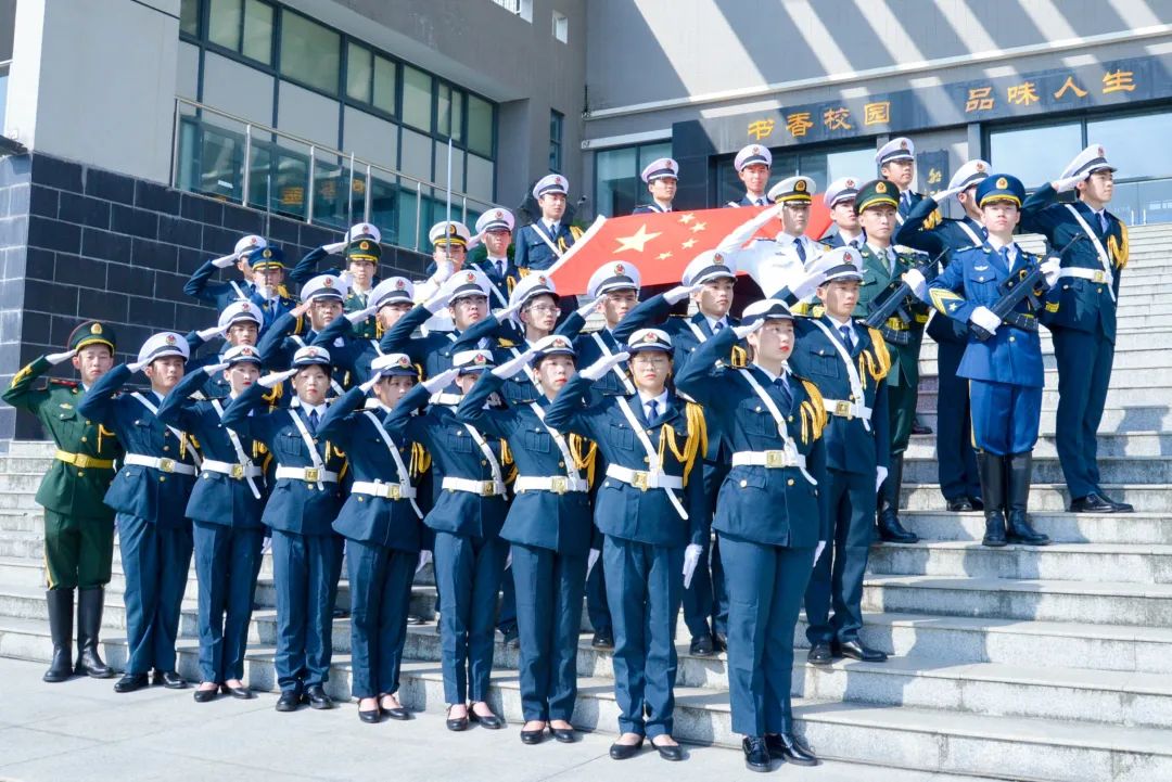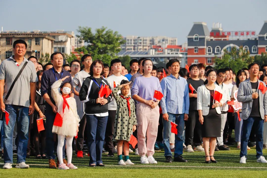 在雄壯的國(guó)歌聲中,鮮艷的五星紅旗冉冉升起,迎風(fēng)飄揚(yáng)。全體師生深懷對(duì)祖國(guó)的無限熱愛和崇高敬意,面向國(guó)旗行注目禮。