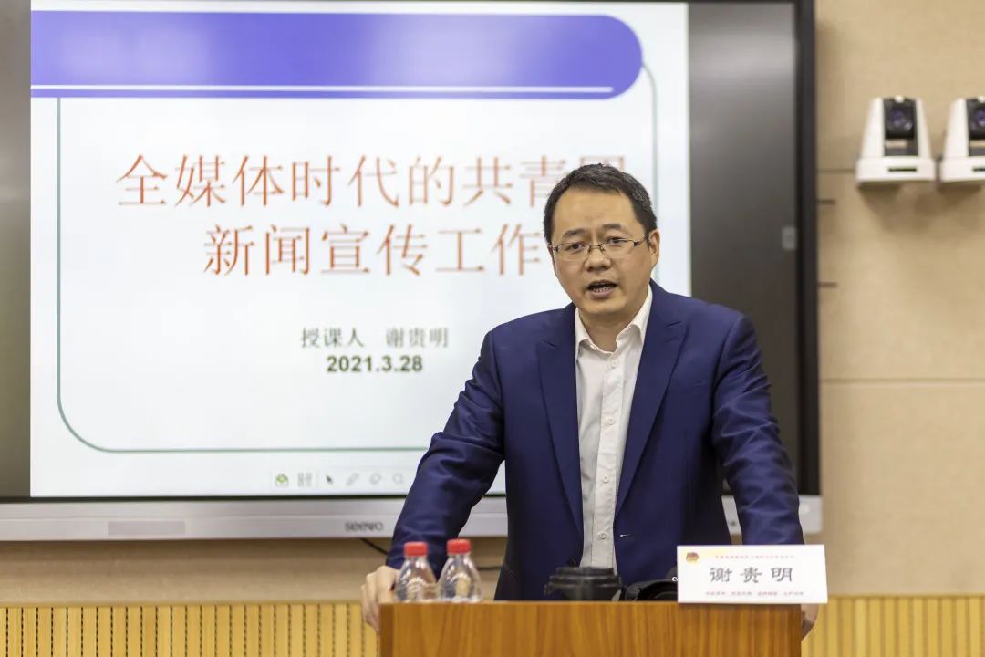 團(tuán)省委宣傳部副部長(zhǎng)、福建青年講師團(tuán)成員周偉亮老師圍繞“全媒體時(shí)代:如何做好“官宣””這一主題,從團(tuán)省委融媒體中心工作經(jīng)驗(yàn)出發(fā),援引“今日頭條”大數(shù)據(jù)的運(yùn)用、人氣網(wǎng)紅李子柒的走紅和特朗普與《紐約時(shí)報(bào)》的“推特論戰(zhàn)”等案例,深入剖析了媒體的天職與“官宣”的使命,深刻闡釋了全媒體時(shí)代背景下“第一信息源”的轉(zhuǎn)移和客戶端與自媒體所帶來(lái)的挑戰(zhàn),為新媒體運(yùn)營(yíng)師生如何做好“官宣”提供了豐富的理論指引和生動(dòng)的實(shí)踐指導(dǎo)。