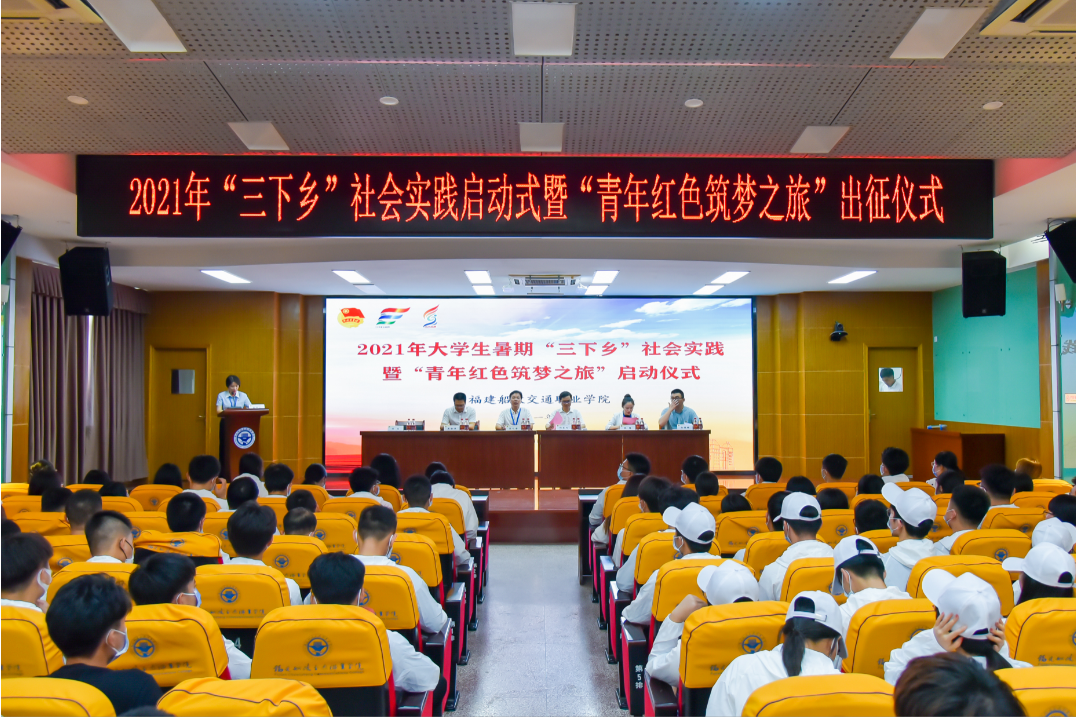 為慶祝中國共產(chǎn)黨成立100周年,落實(shí)共青團(tuán)中央《關(guān)于開展2021年全國大中專學(xué)生志愿者暑期文化科技衛(wèi)生“三下鄉(xiāng)”社會(huì)實(shí)踐活動(dòng)的通知》要求,6月30日下午,福建船政交通職業(yè)學(xué)院2021年大學(xué)生暑期“三下鄉(xiāng)”社會(huì)實(shí)踐暨“青年紅色筑夢(mèng)之旅”活動(dòng)啟動(dòng)儀式在我院北區(qū)1號(hào)樓六樓學(xué)術(shù)報(bào)告廳舉行。學(xué)院黨委副書記陳宜大,相關(guān)部門負(fù)責(zé)人,以及今年參加大學(xué)生暑期“三下鄉(xiāng)”社會(huì)實(shí)踐、青年紅色筑夢(mèng)之旅的師生代表等200余人參加了本次會(huì)議。會(huì)議由學(xué)院團(tuán)委副書記梁晶主持。
