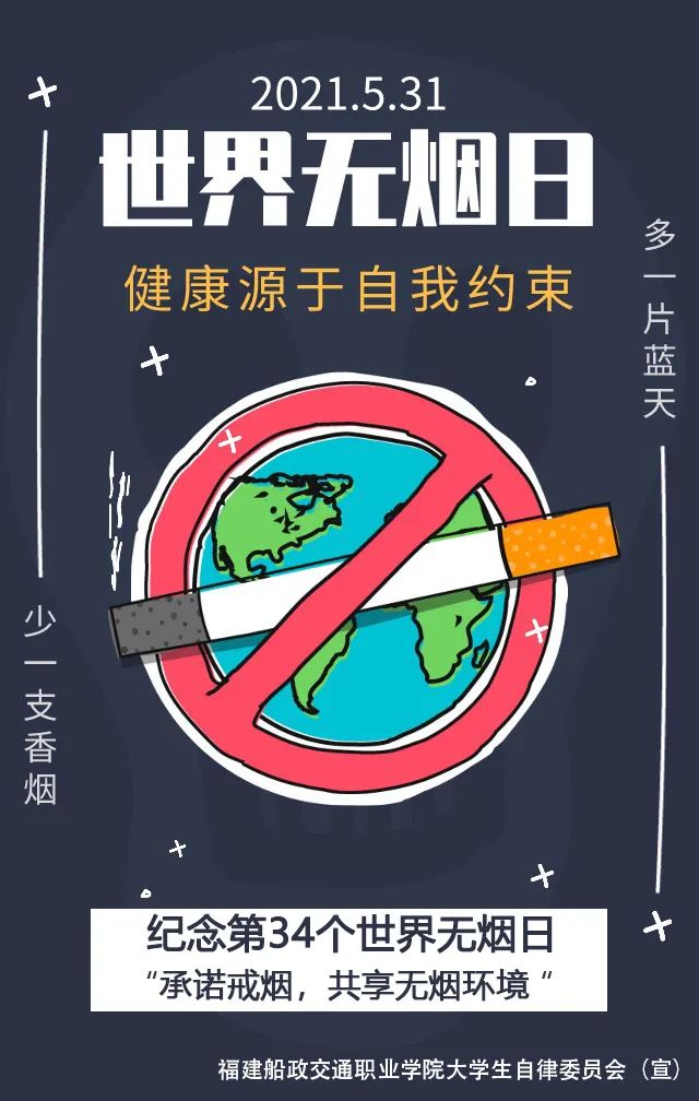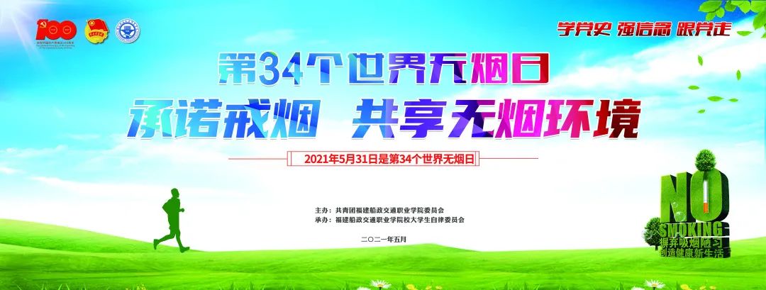 為推動黨史學(xué)習(xí)教育深入開展,將學(xué)習(xí)成果轉(zhuǎn)化為辦實事、開新局的實際行動,動員更多師生參與和支持校園無煙事業(yè),以優(yōu)異成績慶祝中國共產(chǎn)黨成立100周年,在世界第34個世界無煙日到來之際,校大學(xué)生自律委員會舉辦“承諾戒煙 共享無煙環(huán)境”世界無煙日校園系列活動。