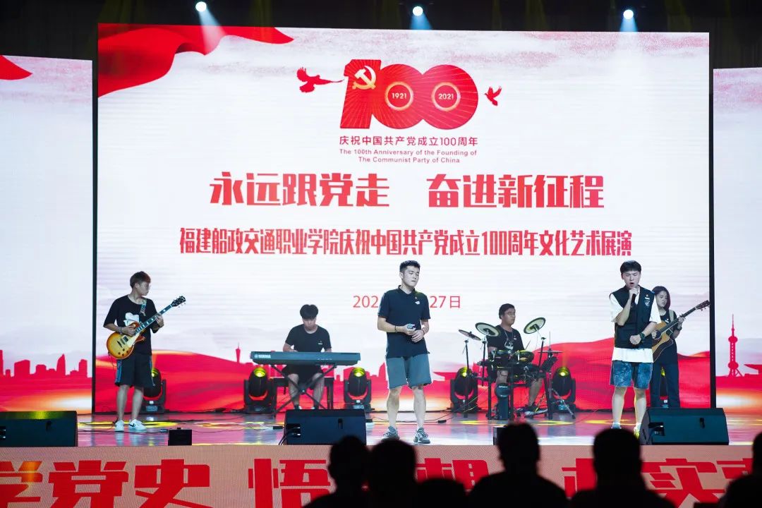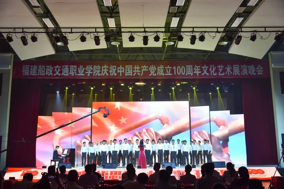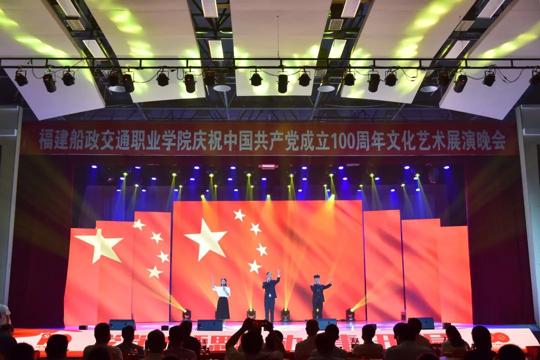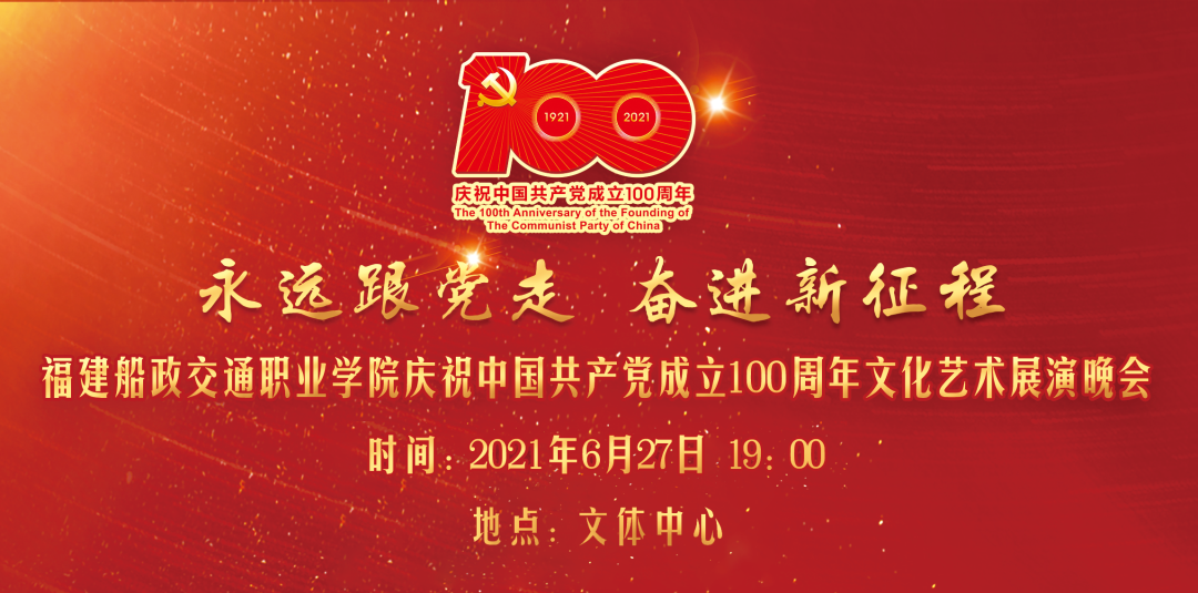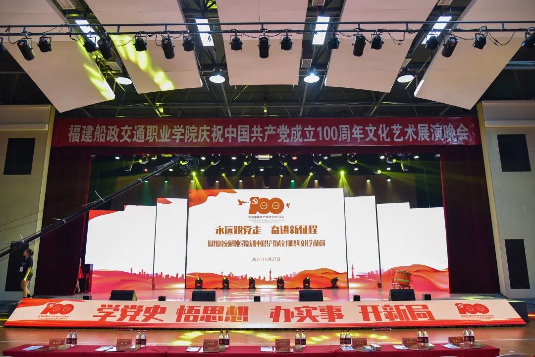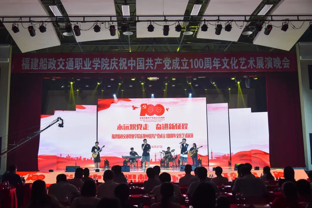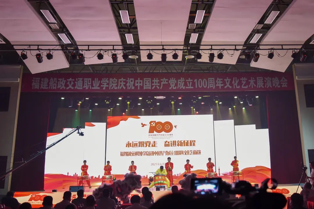 2021年6月27日晚19:00,“永遠(yuǎn)跟黨走 奮進(jìn)新征程”福建船政交通職業(yè)學(xué)院慶祝中國(guó)共產(chǎn)黨成立100周年文化藝術(shù)展演晚會(huì)在學(xué)院北區(qū)文體中心順利舉辦,學(xué)院黨委書(shū)記張海明,學(xué)院黨委副書(shū)記、院長(zhǎng)陳錦輝,學(xué)院黨委副書(shū)記陳宜大,學(xué)院紀(jì)委書(shū)記張輝,學(xué)院副院長(zhǎng)高汝武、張祖柱、陳艷紅,學(xué)院所有職能部門負(fù)責(zé)人和二級(jí)學(xué)院黨政負(fù)責(zé)人,閩清職專、合作企業(yè)、共建單位代表,學(xué)院師生等500余名參加并觀看了本次晚會(huì)。本次晚會(huì)采用線上線下同步觀看,線上觀看人次達(dá)到8.23萬(wàn)。