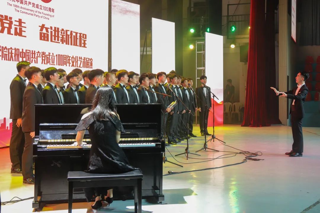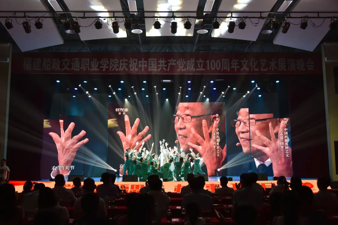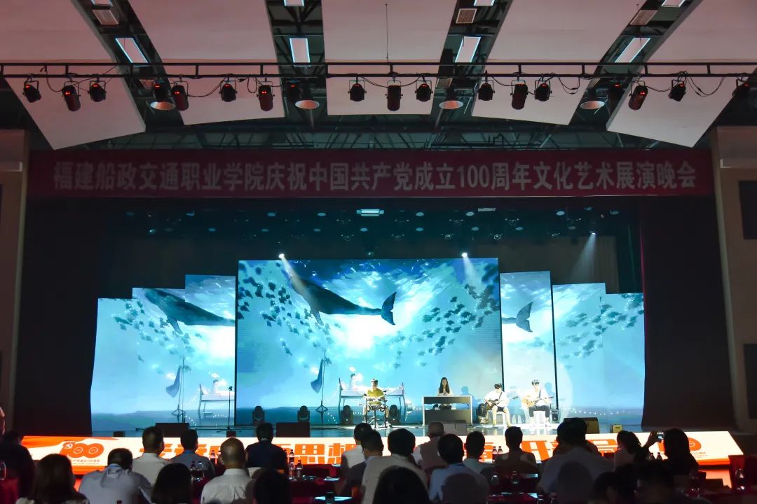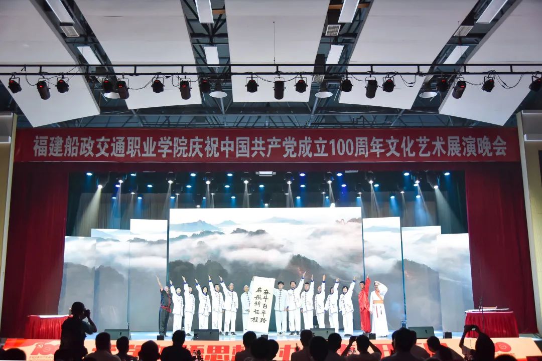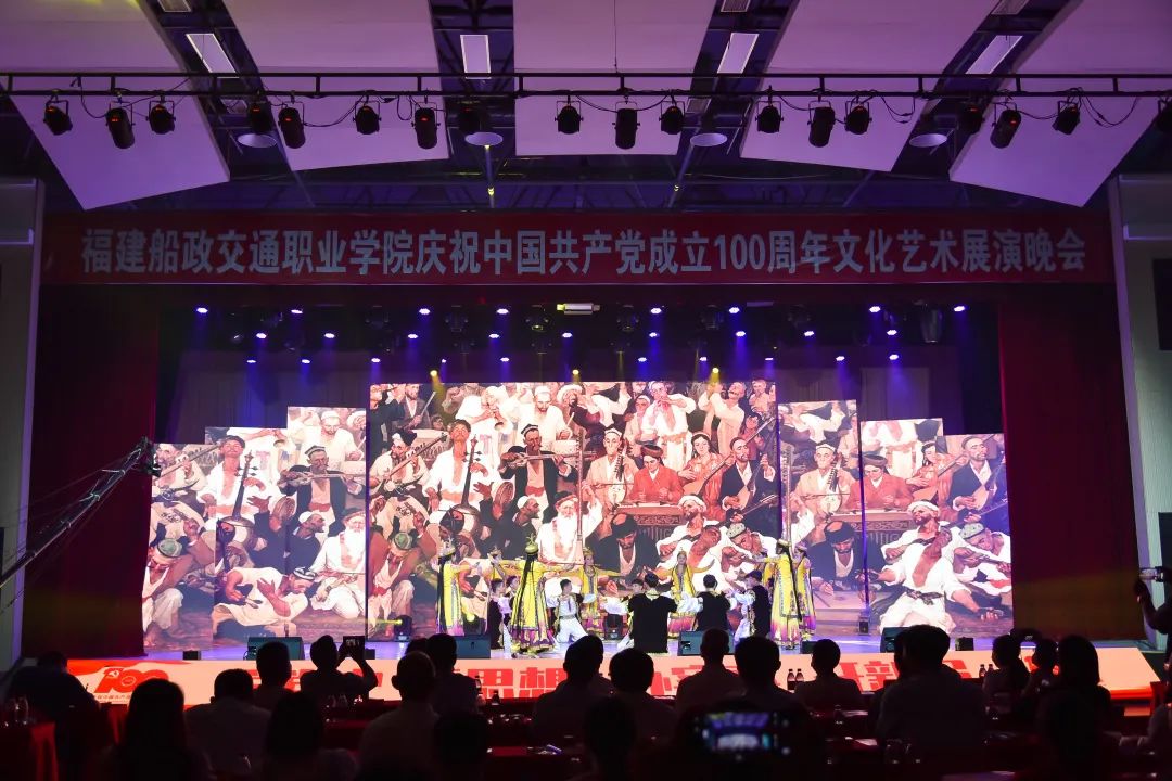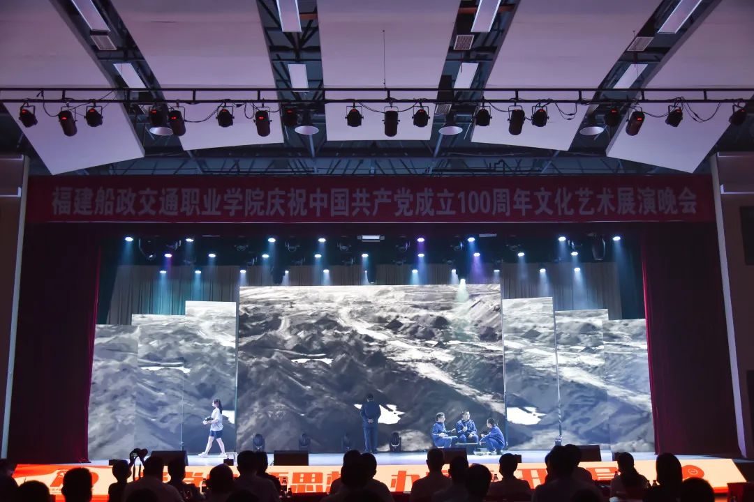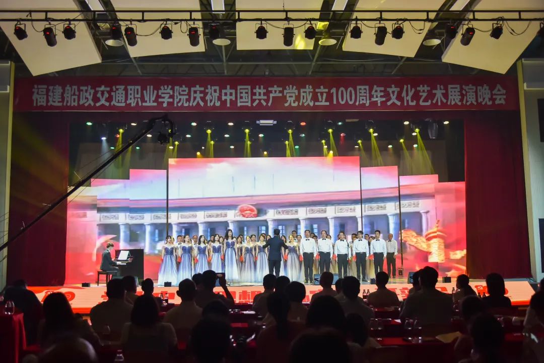 2021年6月27日晚19:00,“永遠(yuǎn)跟黨走 奮進(jìn)新征程”福建船政交通職業(yè)學(xué)院慶祝中國(guó)共產(chǎn)黨成立100周年文化藝術(shù)展演晚會(huì)在學(xué)院北區(qū)文體中心順利舉辦,學(xué)院黨委書(shū)記張海明,學(xué)院黨委副書(shū)記、院長(zhǎng)陳錦輝,學(xué)院黨委副書(shū)記陳宜大,學(xué)院紀(jì)委書(shū)記張輝,學(xué)院副院長(zhǎng)高汝武、張祖柱、陳艷紅,學(xué)院所有職能部門負(fù)責(zé)人和二級(jí)學(xué)院黨政負(fù)責(zé)人,閩清職專、合作企業(yè)、共建單位代表,學(xué)院師生等500余名參加并觀看了本次晚會(huì)。本次晚會(huì)采用線上線下同步觀看,線上觀看人次達(dá)到8.23萬(wàn)。
