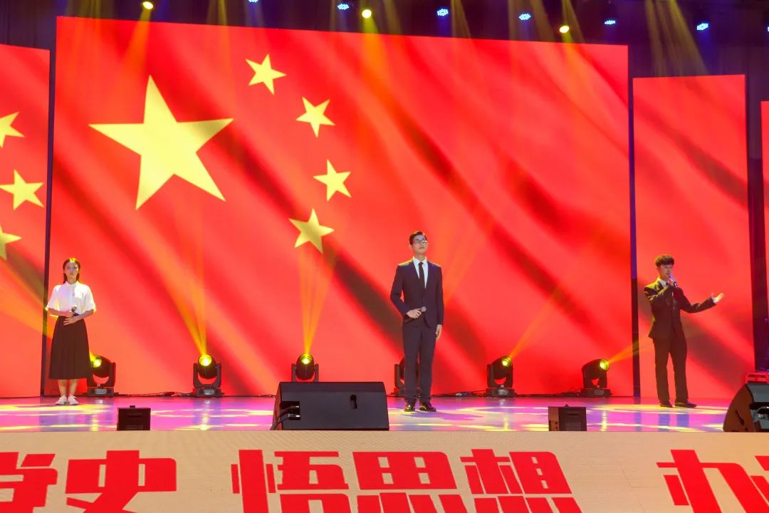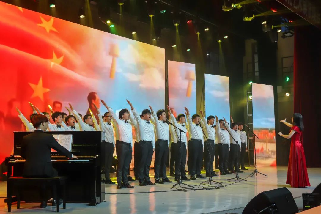 飛揚(yáng)的歌聲,吟唱難忘的歷史,激昂的旋律,詮釋光明的未來(lái)。晚會(huì)在《沒(méi)有共產(chǎn)黨就沒(méi)有新中國(guó)》慷慨激昂的合唱聲中結(jié)束。